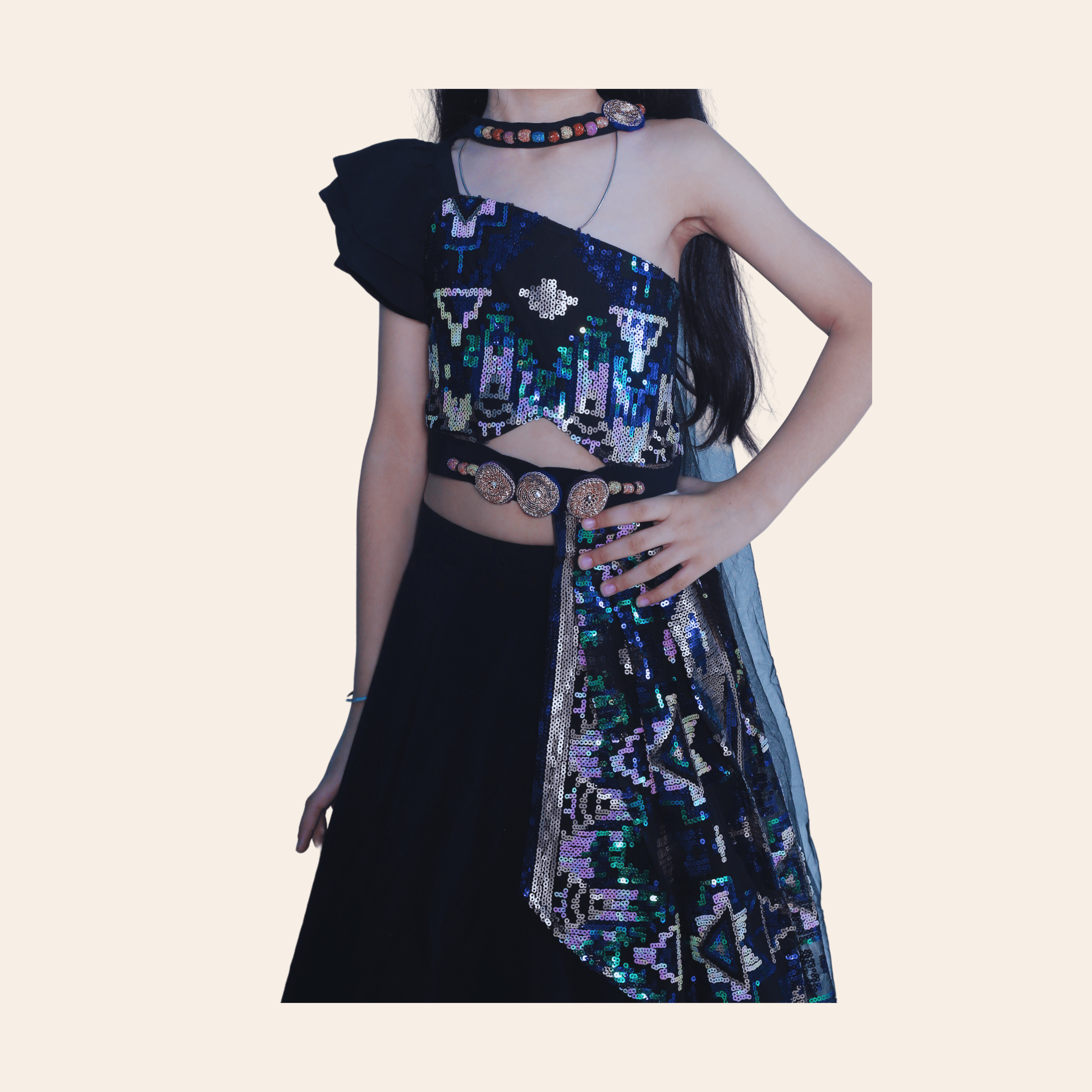 Midnight Stylish Sequin Lehenga Set