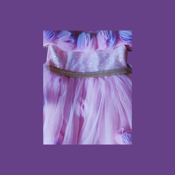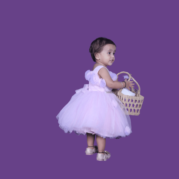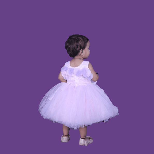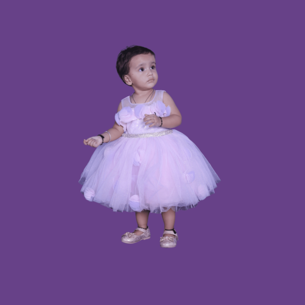This enchanting mauve frock is meticulously made from premium net fabric, showcasing a beautifully elaborate stitched design that brings a touch of refinement and grace. Embellished with delicate floral details on the front, enhanced by a shimmering silver waist lace, and featuring beautiful 3D flower work, this dress exudes an air of elegance and timeless charm. The stunning craftsmanship and luxurious finish make it the perfect choice for your little princess to capture attention and steal the spotlight at any memorable event or distinguished occasion.